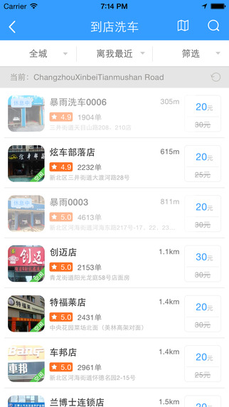 功能:全城1元洗車——用戶在全城范圍內的加盟店享受一元洗車活動;會員價洗車——洗車需辦卡才享會員價?不!在暴雨洗車,無需辦卡,同樣享受會員價;