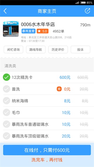 全城1元洗車——用戶在全城范圍內的加盟店享受一元洗車活動;會員價洗車——洗車需辦卡才享會員價?不!在暴雨洗車,無需辦卡,同樣享受會員價;